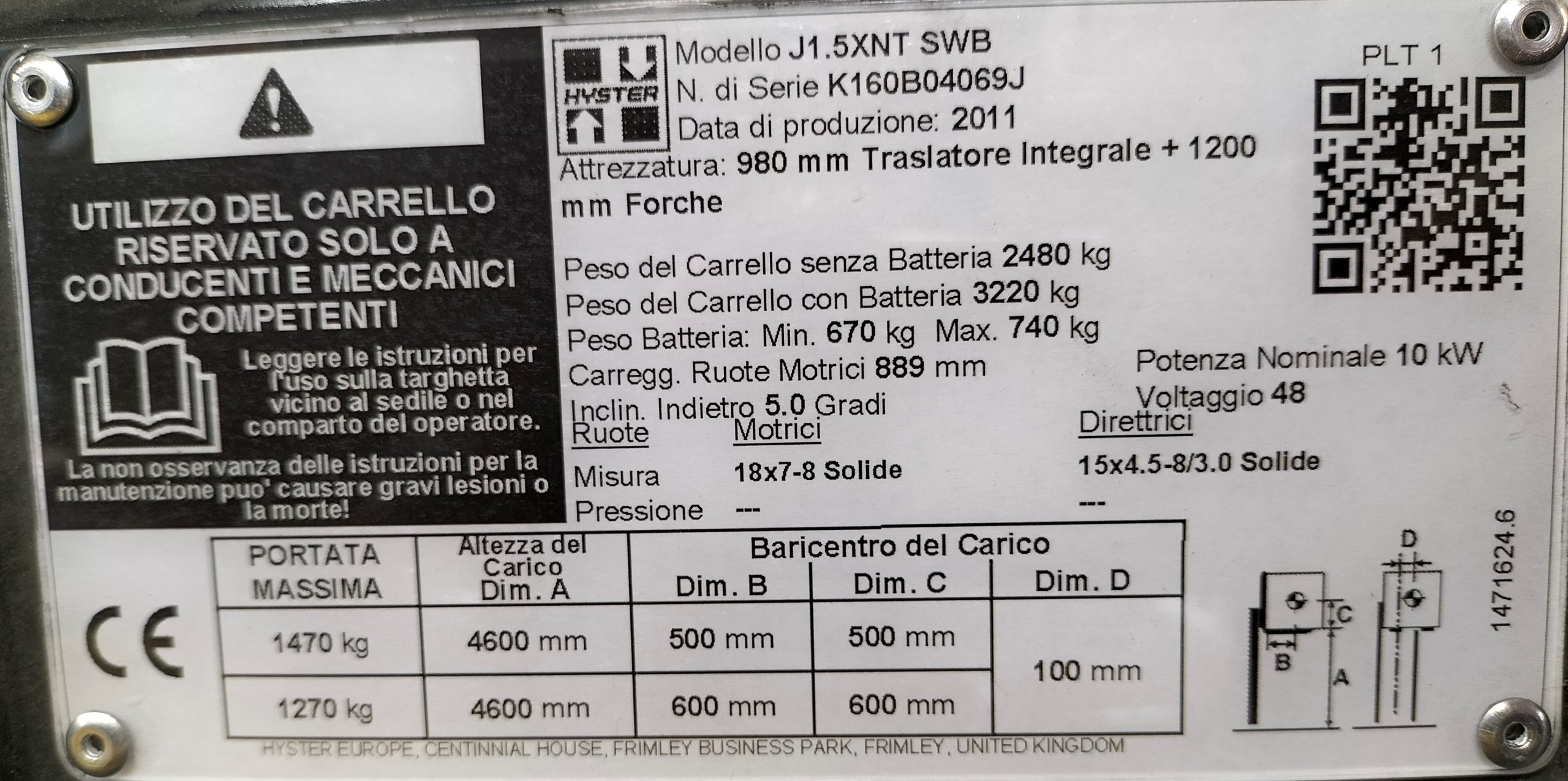 Carrello Elettrico USATO HYSTER modello J1.5XNT SWB