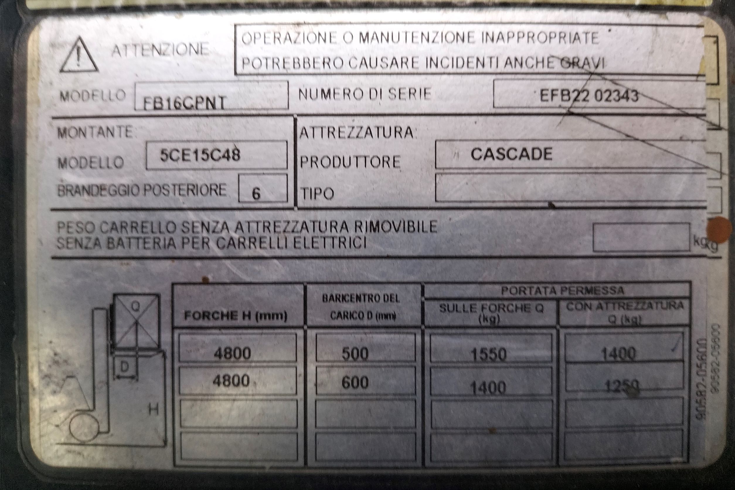 • Portata nominale Kg 1600
