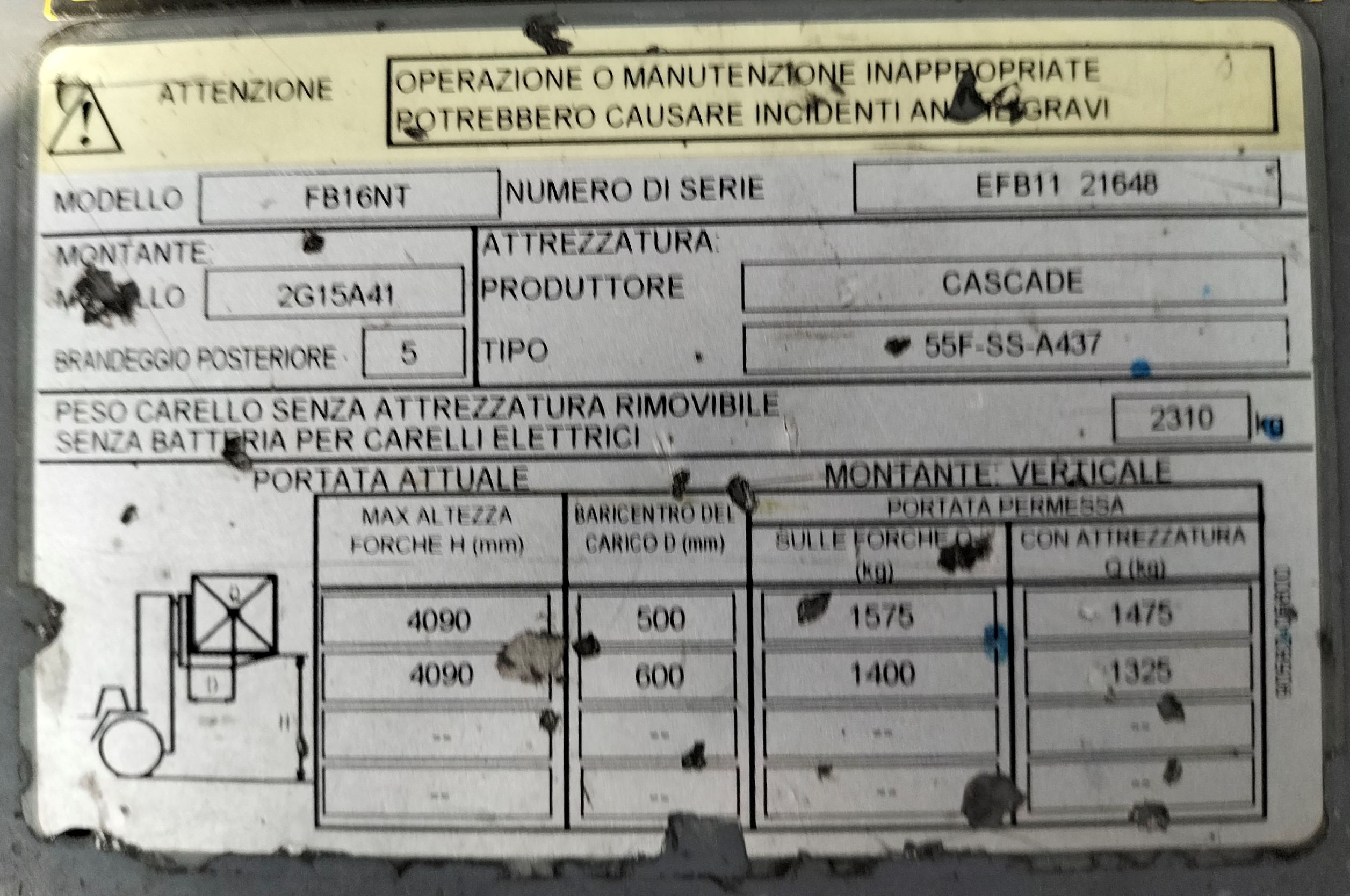- Portata nominale Kg 1600
